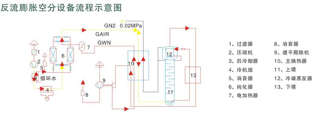 高純氮空分設備采用分子篩吸附、氣體膨脹機膨脹制冷、單塔精餾原理。可根據用戶需要不同形態(氣態。液態)氮氣的使用,可根據用戶需要不同壓力等級氮氣定制,做到能耗最低,該振生產規模從10Nm3/h到10000Nm3/h(氮氣產量)均可按照用戶需求特殊定制。